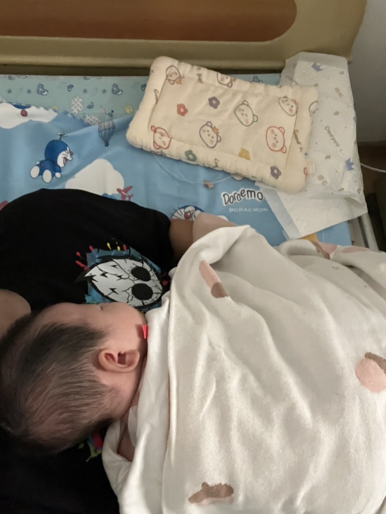 他外婆来伺候了一个月的月子,都是跟他外婆睡,外婆回去之后,我就接任了晚上带娃的任务。