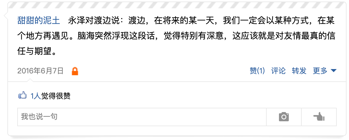 2016年 我看过村上春树的 《挪威的森林》 ,就很喜欢这句话,当时还用 QQ 发了说说: