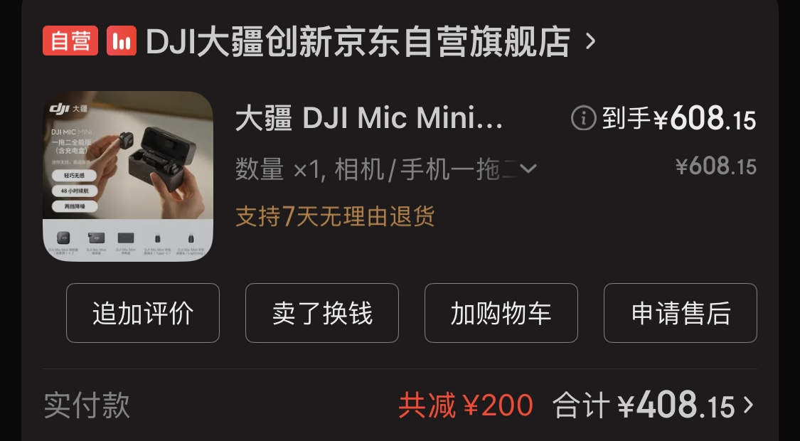我一直思索这笔钱如何花才最有意义,必须是买个物品,这样可以更长久的留存下来,于是选了大疆的麦克风,这样我以后录制玥玥的声音可以得到更好的音质。